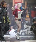 Agora podemos dar uma olhada em Margot Robbie interpretando a Arlequina em algumas imagens do set de filmagens. Algumas coisas fazem referências ao Coringa, como na jaqueta de Margot Robbie (Harley Quinn) podemos notamos uma clara referência ao Palhaço Príncipe do Crime com os dizeres: “Propriedade do Coringa” (Property of Joker). Além disso, também notamos que o zíper da jaqueta tem forma de “J”, e uma tatuagem na coxa que não pode ser vista com clareza, onde está escrito “Puddin” (está faltando algumas letras para completar Pudim em inglês), apelido carinhoso com o qual ela se refere ao Coringa!