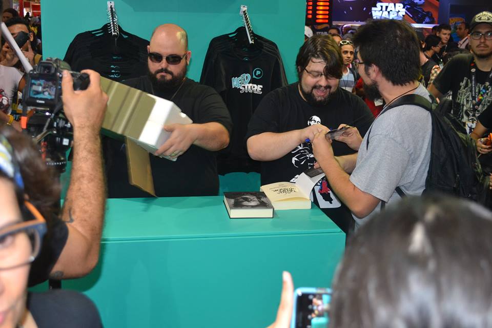No estande da Nerd Store foi feita a venda exclusiva do busto de OZOB, e pelo o que vimos os fãs fizeram fila para 1 dos 500 produzidos com direito a autógrafo de Jovem Nerd e Azaghal.