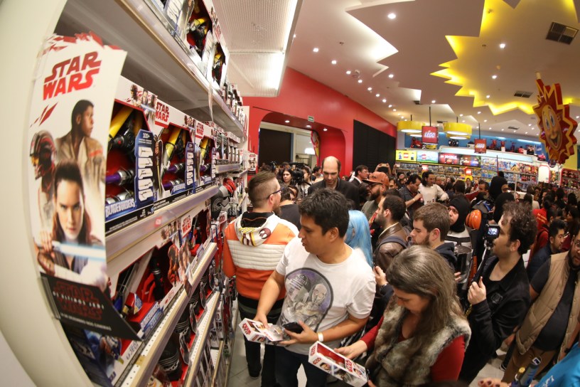 A loja abriu as portas às 00h01 para que os cerca de 300 fãs que aguardavam ansiosamente desde às 22h, pudesse comprar brinquedos e colecionáveis inspirados no novo filme. O evento contou com a presença do androide BB-8. Um concurso escolheu o melhor cosplayer que, além de ganhar um kit de produtos licenciados, entrou oito minutos antes da abertura da loja. E como sempre a Hasbro apresentou muitas novidades com figuras, peças de role-play e playsets detalhadas, perfeitas para agradar aos fãs dos filmes e colecionadores, confira abaixo: