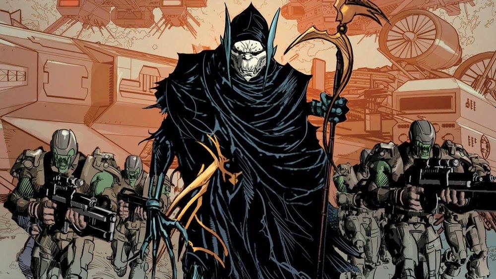 A principal arma do implacável general é uma Glaive (lança mística) que além de sua precisão em cortar átomos lhe garante a imortalidade enquanto estiver intacta. Sua primeira aparição aconteceu em Infinity – Free Comic Book Day (2013).