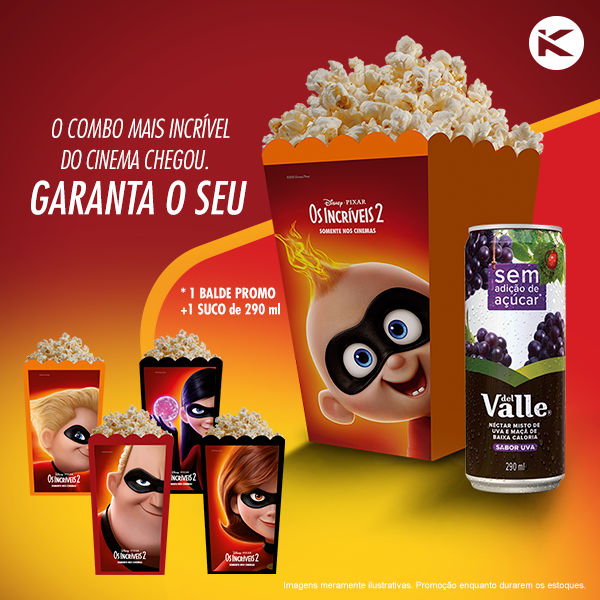 A rede Kinoplex apresenta o combo promocional com um balde exclusivo do filme Os Incríveis 2.