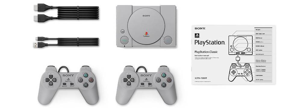 A versão miniatura do console é 45% menor que o PlayStation original. Cada unidade também virá com dois controles originais do console, além de um cabo USB e um cabo HDMI.