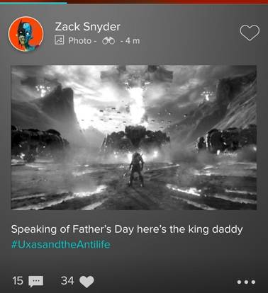 Zack Snyder divulgou uma imagem no VERO, com Darkseid no filme Liga da Justiça.