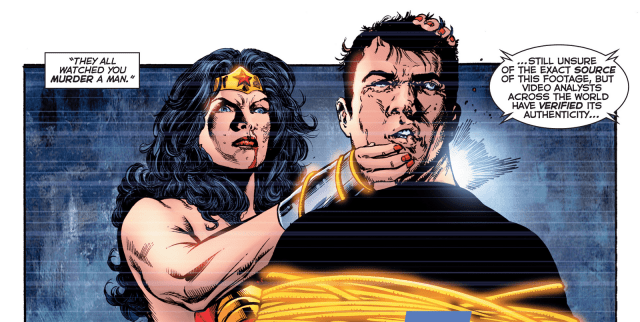 Mulher-Maravilha luta contra Superman sozinha, mas percebe que não há outra solução, pois quando envolve Maxwell Lord com o Laço da Verdade o mesmo diz que só poderá ser detido se morrer.