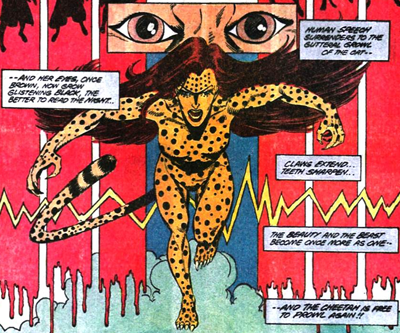 A Dra. Barbara Ann Minerva era uma arqueóloga que pesquisava uma tribo da África cuja guardiã era uma criatura com os poderes do Guepardo. A guardiã foi assassinada e Barbara, com a ajuda da sacerdotisa Chuma, tomou seu lugar esperando ganhar a imortalidade. Os poderes lhe seriam dados após Barbara beber uma combinação de sangue humano com uma planta sagrada do deus Urzkartaga. Mas como Barbara não era uma virgem, sua transformação foi amaldiçoada.