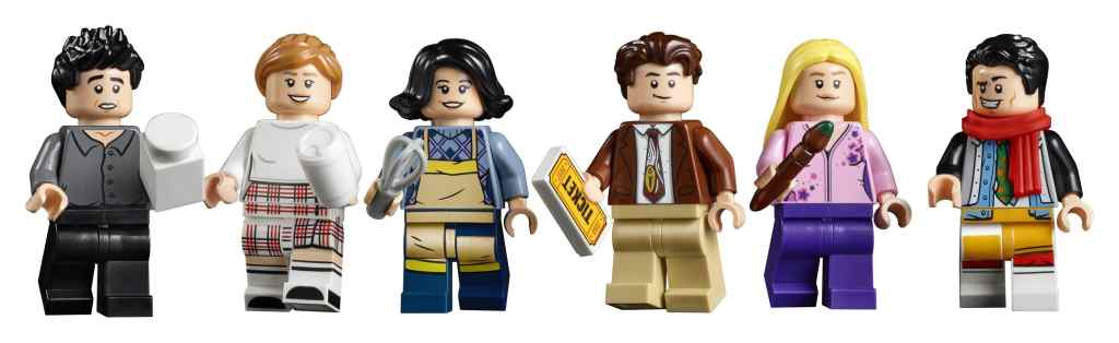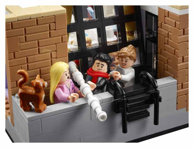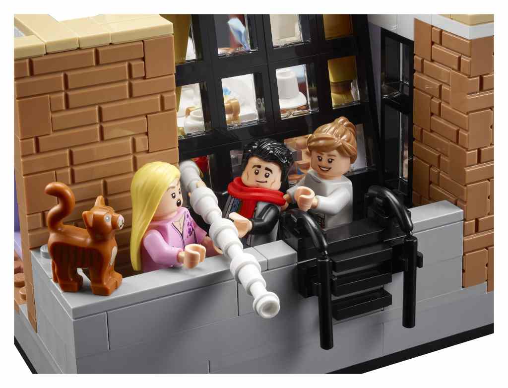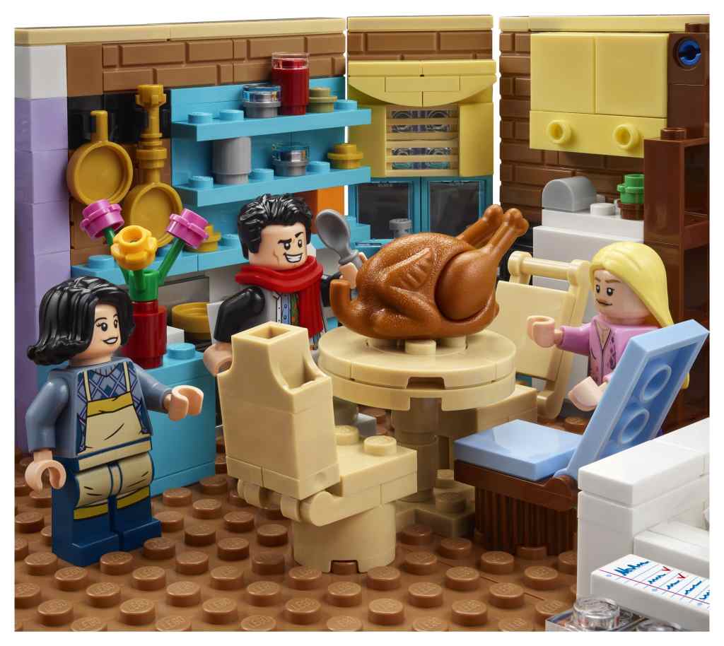 O conjunto, que conta com 2.048 peças, recria os apartamentos de Monica, Rachel, Chandler e Joey, com o hall de entrada que os conecta e até mesmo alguns easter eggs, como o peru de Dia de Ação de Graças, a canoa decorativa, a casa de bonecas da Phoebe e mais.