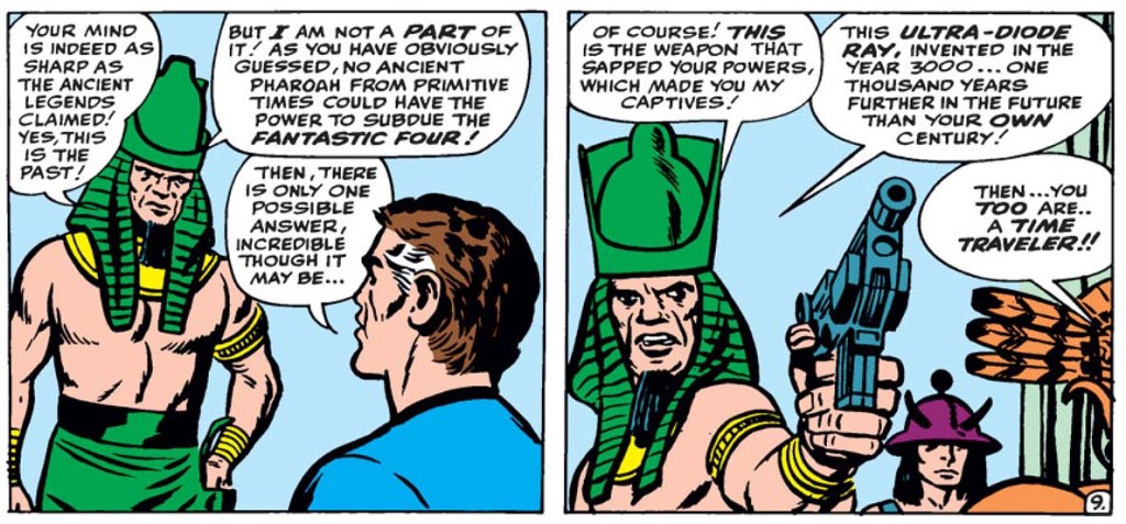 RAMA-TUT – Foi uma das primeiras identidades assumidas por Kang nas HQs. Essa aparição aconteceu no quadrinho Quarteto Fantástico #19, ele viajava no tempo usando uma pirâmide voadora.