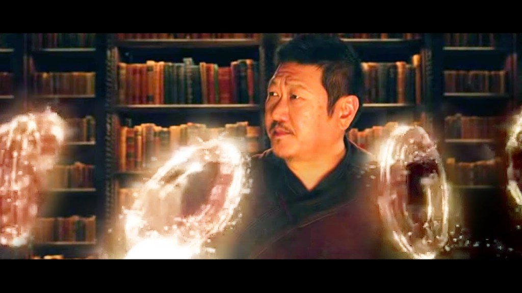 Durante a primeira cena, Wong encontra Shang e sua amiga Katy e pergunta se os anéis estão com eles. Logo após a resposta afirmativa e os dois seguirem Wong, vemos Bruce Banner e Capitã Marvel comentando junto com a dupla e o Mago que o material dos anéis é muito antigo e não é conhecido por nenhum deles, não sendo de Wakanda e nem de lugar nenhum do universo. Logo após essa pequena conversa Wong percebe que os anéis estão enviando um sinal para alguém.