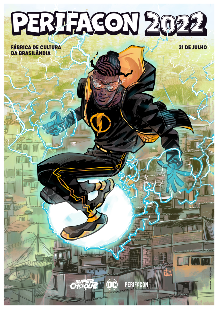 A PerifaCon revelou o pôster oficial da edição 2022, o cartaz mostra Super Choque, o herói da DC, sobrevoando a periferia.