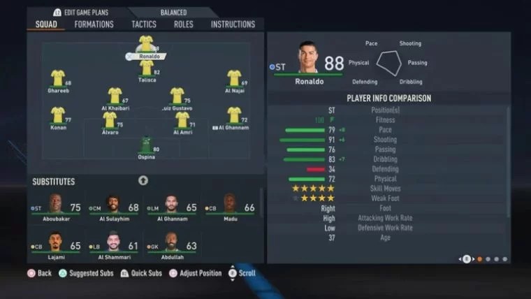 O jogador, que anteriormente pertencia ao clube inglês Manchester United, agora faz parte do time Al-Nassr, da Arábia Saudita e por conta dessa mudança a EA mudou as notas do jogador que antes chegavam a 90 de overall e agora está em 88.