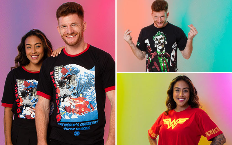 Os mais de 20 novos modelos das camisetas apresentam os clássicos personagens como Mulher Maravilha, Superman, Coringa, Flash, Batman e claro, Arlequina. As novas estampas são estilosas e vibrantes, destacando os super-heróis em ação, além de novos modelos com o logo dos personagens para você completar a coleção.