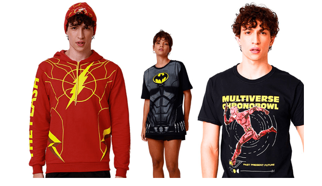 “Como lançamento do primeiro filme solo de Flash, não podíamos deixar de lançar uma coleção totalmente inspirada no herói e na volta de Michael Keaton como Batman30 anos depois. A coleção ficou incrível e conta com três camisetas, sendo uma peitoral Flash, outra do Batman e uma dupla face mostrando os dois personagens com referências da anomalia temporal criada no filme. Trazemos também um moletom nas cores do Flash com o símbolo do uniforme, um kit com duas meias comas artes da dupla e acessórios como boné, touca, cordão, pin e um kit com dois patches. Temos certeza que a coleção vai agradar tanto os fãs mais antigos quanto os mais novos”