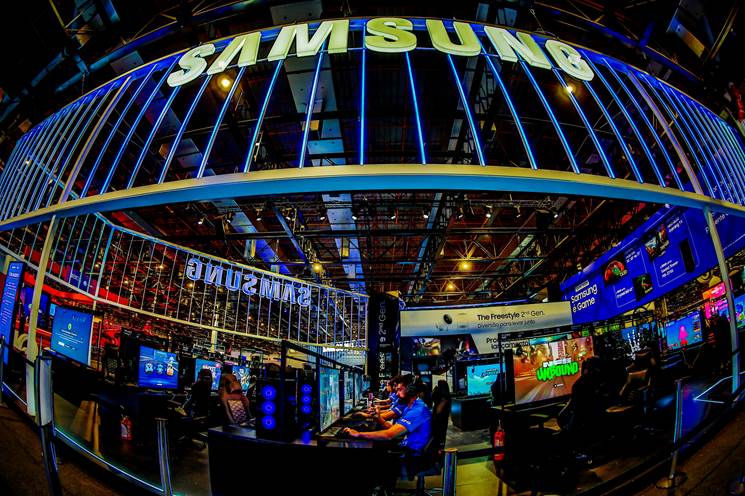 A Samsung foi destaque com um estande de 1.000m² e mezanino, onde jogamos utilizando o Samsung Gaming Hub, o streaming de jogos que dispensa o uso do console e já vem instalado nas Smart TVs da Samsung, nos modelos Crystal UHD 4K CU8000 e a Samsung OLED 4K S90C de 2023.