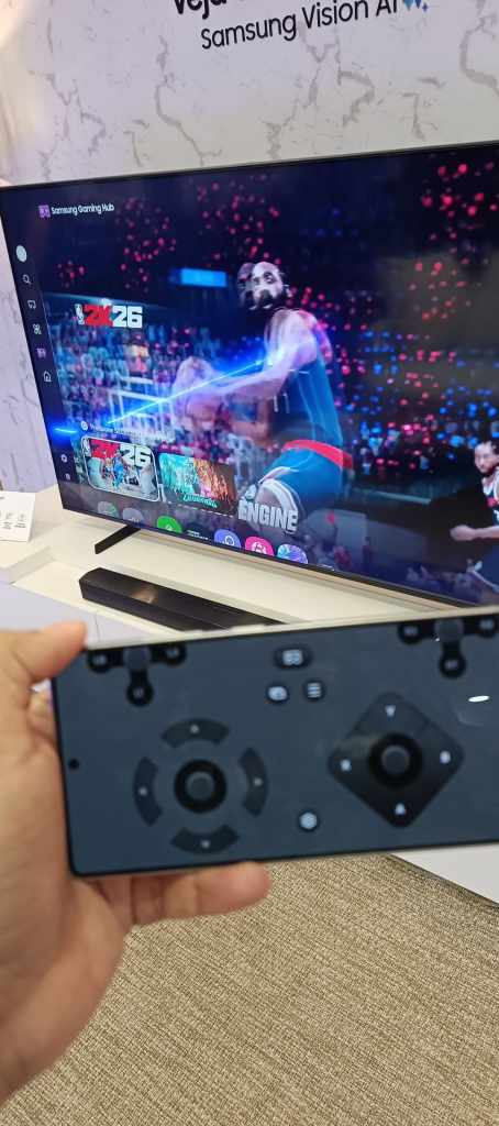 Você controlar a TV utilizando gestos sem o uso do controle físico, com o Galaxy Watch, ou até mesmo transformando seu celular em um controle gamer para utilizar da melhor maneira o Gaming Hub, com possibilidade de conectar sua conta da Game Pass tornam o modelo uma excelente escolha para quem quer aproveitar todos os recursos e integração entre os sistemas de multiplos parelhos da Samsung.