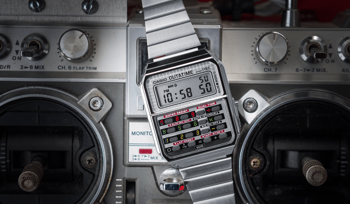 Produzido em colaboração com a Universal Products & Experiences (UP&E), o relógio é um mergulho no universo do filme. Baseado no cultuado CA-500, famoso pela função calculadora que marcou os anos 80, o novo design traz referências diretas ao DeLorean: com uma caixa prateada polida que evoca o visual, aludindo ao espirito da lendária viagem ao tempo de Doc Brown. Os botões coloridos remetem aos circuitos temporais, mostrador inspirado no painel de destino e gravação do lendário capacitor de fluxo na parte traseira.